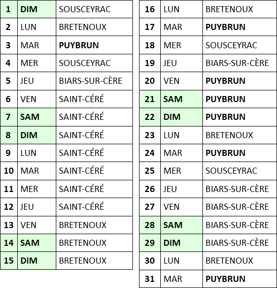 à la Mairie de Puybrun (bureau du 1er étage) de 10h à 12h